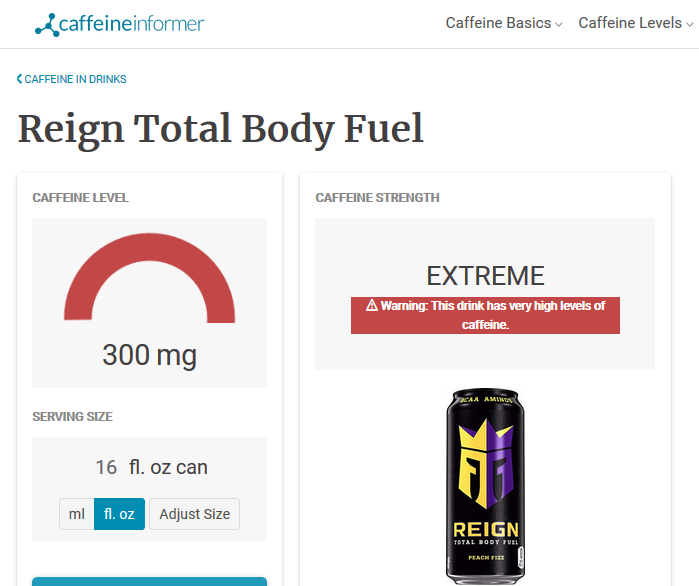 Also, they used 320 milligrams of caffeine, which is over 150% the recommended limit per serving. Healthy adults are only supposed to have 200 milligrams of caffeine at a time.